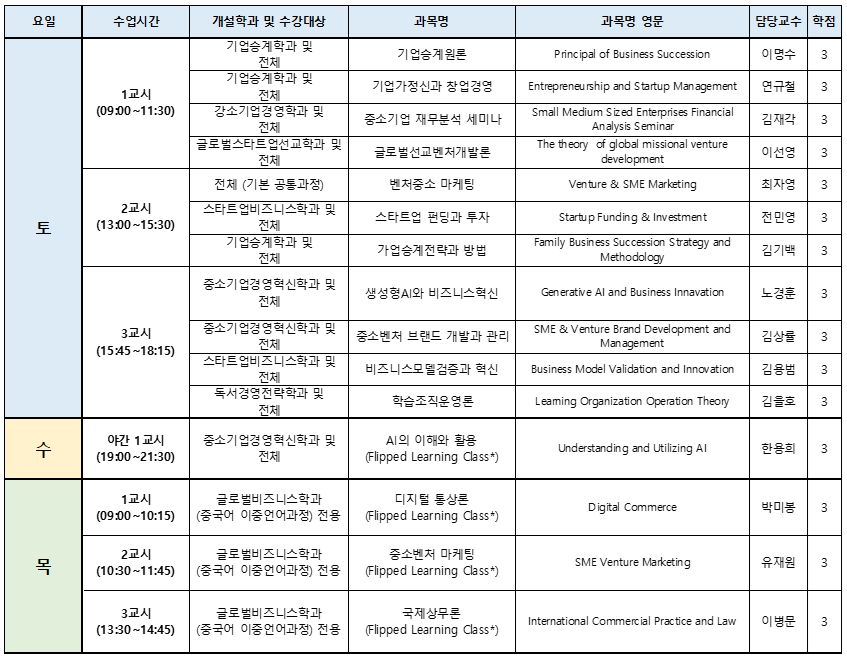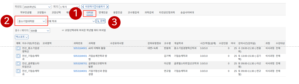 2025학년도 1학기 강의시간표